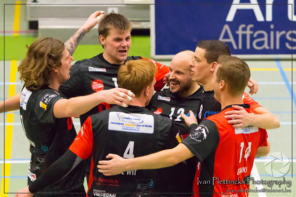 Een ongeschreven volleybal-wet is dat wie vlot de eerste 2 sets heeft weten te winnen, door concentratieverlies vaak een lastig begin van de 3de set kent. Ook voor onze Heren was deze regel van toepassing bij aanvang van set 3. De bezoekers zetten enkele sterke blocks en dus hielden ze behoorlijk gelijke tred tot de eerste time-out, 8-5. Duvel zette zichzelf echter nog eens op scherp en de messen werden geslepen. Met uitmuntend verdedigend werk werden de bezoekers echter tot wanhoop gedreven en werden de meest onmogelijke punten gescoord. De thuisploeg zette zijn meesterschap zo nog wat extra in de verf en het liep verder uit tot 16-9. Ook in het ultieme slot van de wedstrijd toonde Duvel zich de betere en diepte het de kloof zo nog wat verder uit tot 25-14.