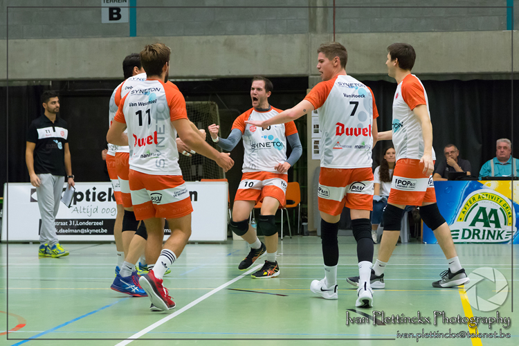 Wij wisten uiteraard dat het zeer moeilijk ging zijn om tegen hen te winnen maar wij hebben ons voor 100% gesmeten! Bewijs hiervan is de prachtige 21-25 in de tweede set. Onze spelers hadden plezier en dat zag je zowel op als naast het terrein. Het was een wedstrijd waar alles mocht en niets moest. Hierdoor was er een zeer ontspannen sfeer waardoor vele spelers boven zichzelf uit stegen. In de 2e set werd het heel heet onder de voeten van de Maaseik-spelers. Even zat het er in dat wij een set konden binnenhalen.