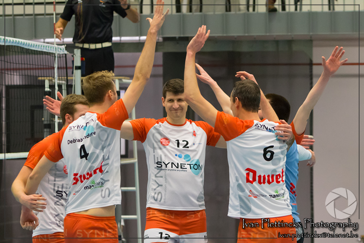 We wisten dat Black and White Company Lendelede extra gemotiveerd aan de opslag zou staan. Zij bengelen onderaan het klassement en kunnen dus elk punt goed gebruiken. Dat toonden ze al zeker in de eerste set waar we geen vuist konden maken. Een zeer sterke Paulides (de ganse wedstrijd heel constant in zijn spel) zette de toon van deze eerste set. Een vervanging van Leonard De Schrijver in de plaats van Jonas Colson kon het tij niet meer helpen keren. De eerste set werd 25-19.