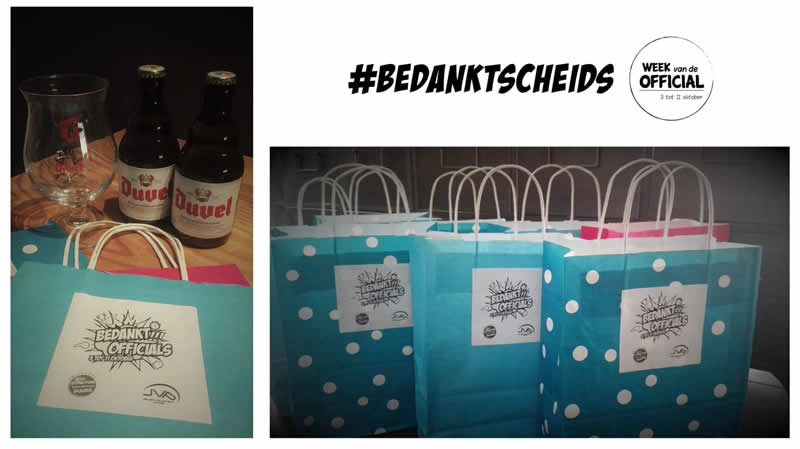 Elke week willen tientallen jongeren naar hartenlust kunnen volleyballen met hun vriend(inn)en. Maar... geen wedstrijd zonder officials! Onze dank is dan ook enorm groot naar alle scheidsrechters en markeerders die zich inspannen om onze jeugd zoveel plezier te kunnen laten beleven. In naam van al onze leden gaven we hen afgelopen weekend dan ook graag een kleine attentie: BEDANKT!