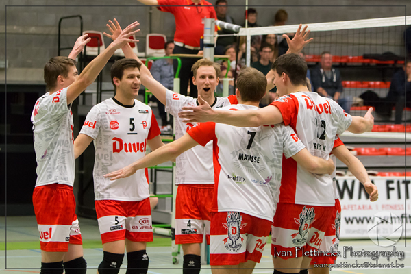 De 3e set werd een walk-over. Mede dankzij de fantastische beats van onze dj Cédric De Boeck en de ambiance van het talloos opgekomen publiek werden onze spelers naar een hoger niveau getild. Je zag dat ze plezier hadden. Er kon zelfs af en toe een dansje vanaf. Het werd een zeer mooie 25-15 setstand. 3-0 dus als eindscore en dankzij onze winst staan we nu op een mooie stevige 2e stek in het klassement.