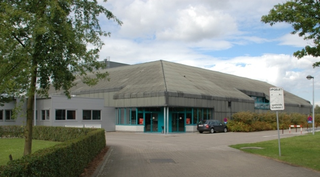 Rechtdoor voorbij de kerk. 200m verder aan het verhoogde wegdek op uw linkerkant staat het sportcentrum.