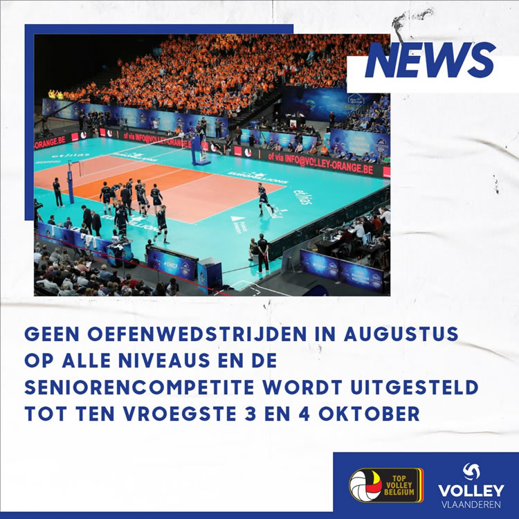 Om alle clubs EN hun spelers en speelsters de mogelijkheid te bieden om een verantwoorde voorbereidingsperiode van minimum vier weken te voorzien, werd beslist om de competitiestart op seniorenniveau uit te stellen tot ten vroegste het weekend van 3 en 4 oktober. Ook de bekercompetities zullen niet van start gaan in september en worden eveneens uitgesteld. Volley Vlaanderen en haar jeugdcommissie zal ten laatste op 15 augustus een beslissing nemen over de start van de jeugdcompetitie.